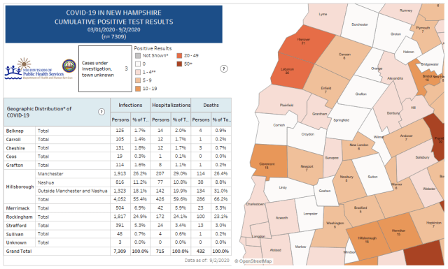 As of Thursday afternoon, there have been at least 7,309 cases and 432 deaths in New Hampshire since the beginning of the pandemic, according to a New York Times database.