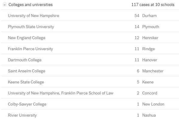 While that figure remains well below the level of 54, or four new cases per 100,000 people each day, which the Monitor is using as a measure of whether the pandemic is under control, the average has risen sharply since schools and colleges reopened. More at https://www.concordmonitor.com/covid-coronavirus-nh-new-hampshire-36637426