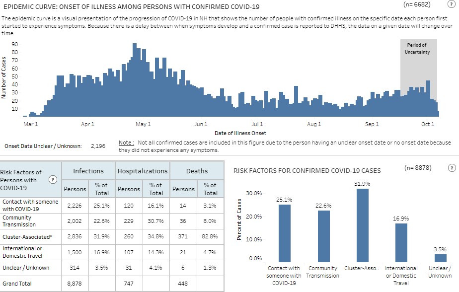 In New Hampshire since the start of the pandemic, there have been a total of 8,878 cases of COVID-19 diagnosed with 747 (8%) of those having been hospitalized.