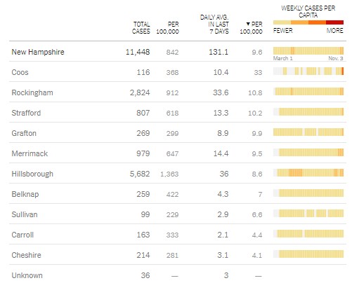 In New Hampshire since the start of the pandemic, there have been a total of 11,448 cases of COVID-19 diagnosed with 784 (7%) of those having been hospitalized.