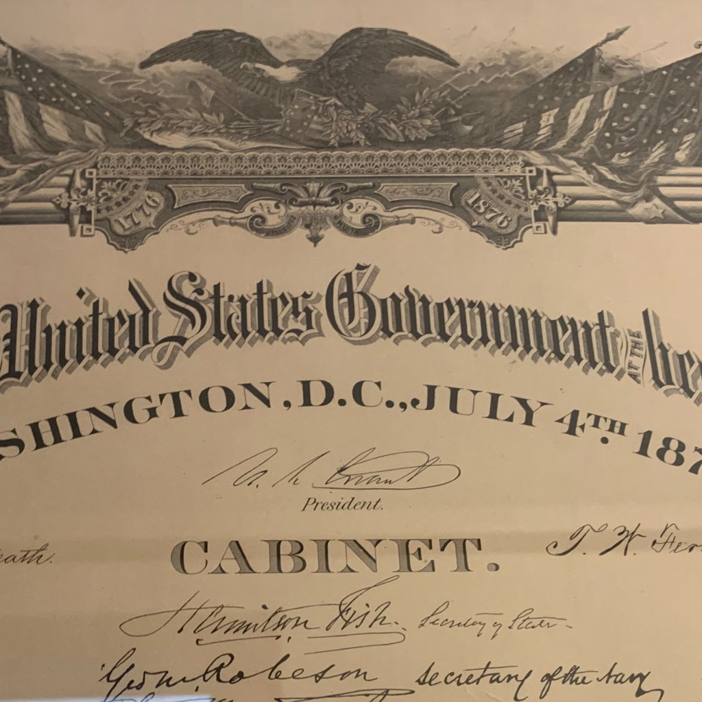 This past week was President Ulysses S. Grant’s 200th birthday! Right outside of the Majority Office we have a signed document which contains President Grant’s signature, which was gifted to New Hampshire in celebration of America’s Centennial anniversary.